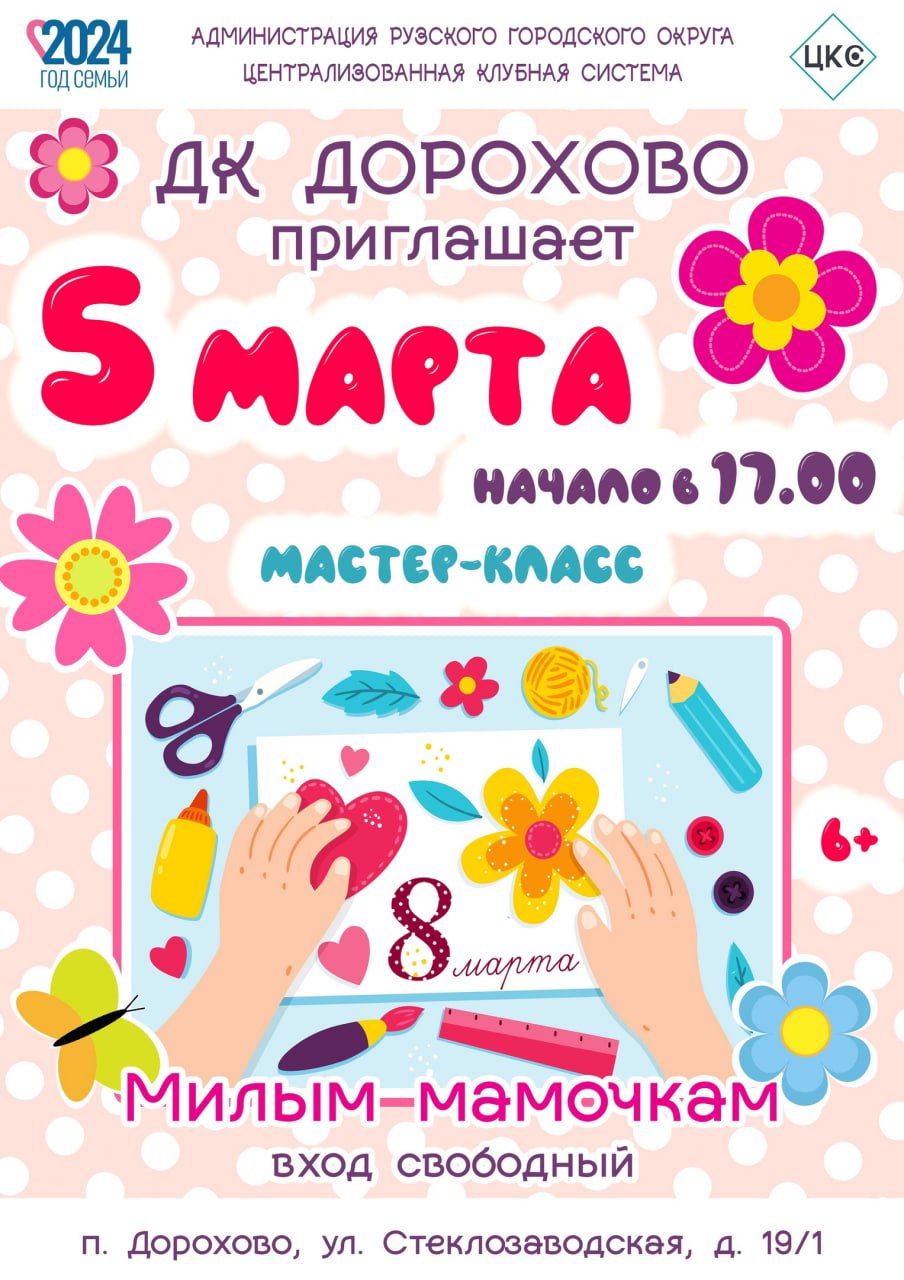 5 марта в Дороховском доме культуры Рузского городского округа состоится творческое занятие "Милым мамочкам".