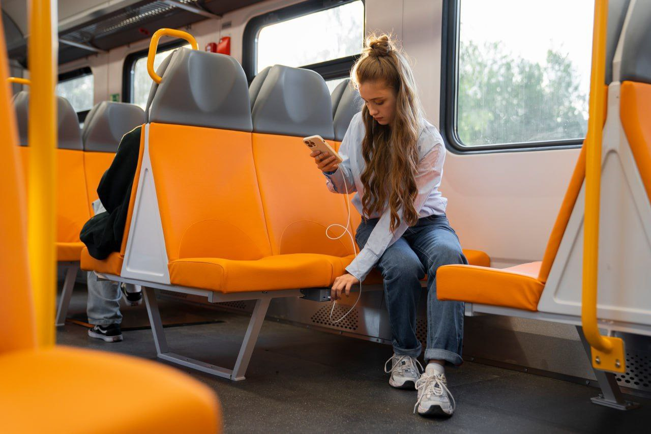 Теперь пассажиры могут заряжать свои гаджеты во время поездки.