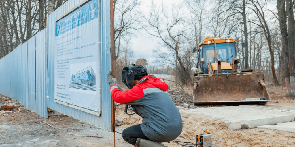 На данный момент строители занимаются подготовкой участка, удаляют деревья, проводят геодезическую разбивку осей. Территория полностью огорожена, внутри работает специальная техника.