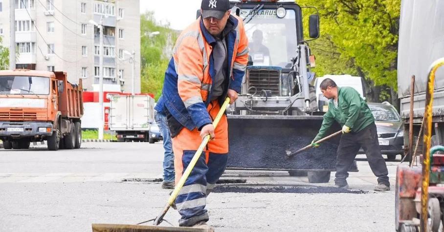 В Подольске рабочие активными темпами ремонтируют ямы на дорогах
