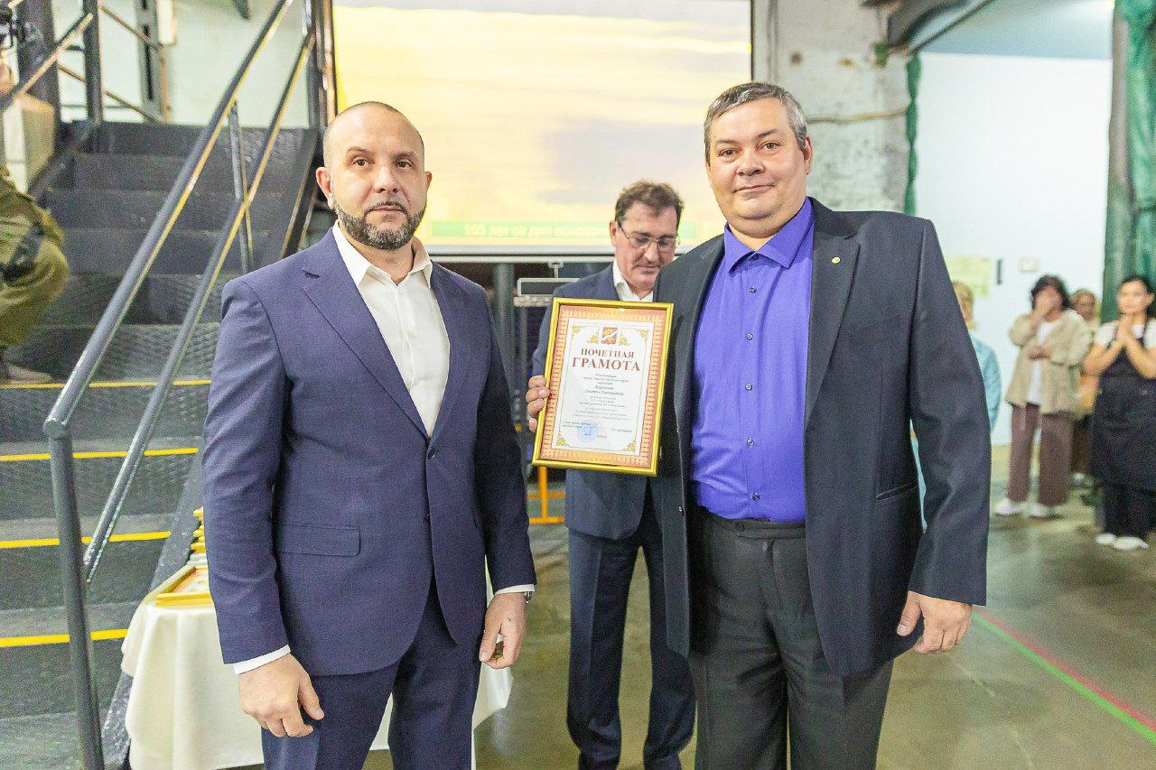 Глава Орехово-Зуевского округа, заместитель секретаря местного отделения партии «Единая Россия» Руслан Заголовацкий вместе с депутатом Мособлдумы, членом политсовета местного отделения партии «Единая Россия» Максимом Коркиным поздравили председателя Совета директоров АО «Стекломаш» Дмитрия Розинского и сотрудников предприятия со 165-летием со дня основания завода.